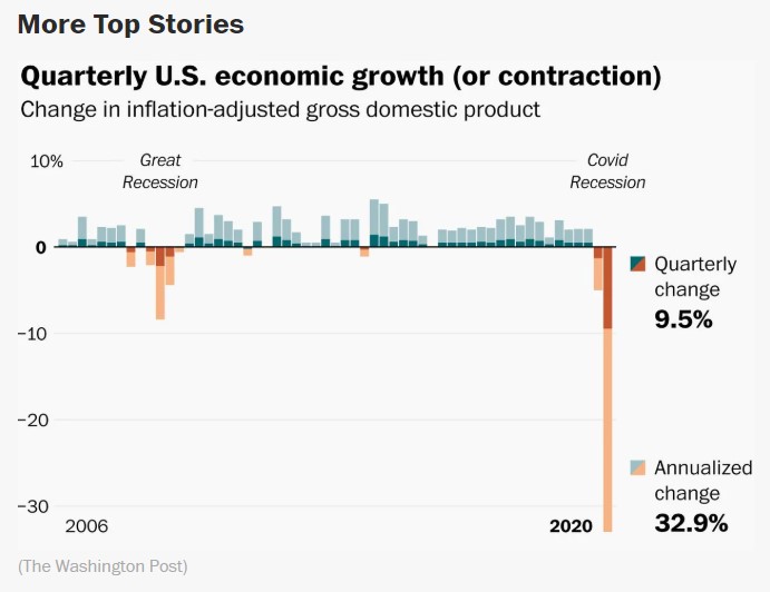 Dunque, ieri abbiamo appreso dagli organi di informazione italiani, e non solo, che il PIL degli Stati Uniti ha avuto nel secondo trimestre un crollo storico del 32,9%.