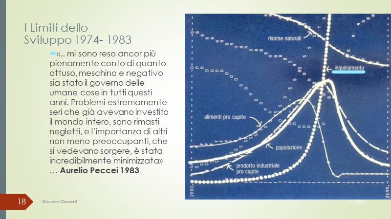 Diamo uno sguardo al passato. A quanto scriveva Aurelio Peccei nella prefazione alla ottava edizione dello studio commissionato dal Club di Roma al System Dynamics Group Massachusetts Institute of Technology (MIT) sui dilemmi dell’umanità.