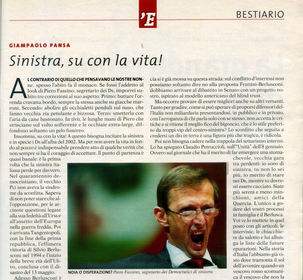 Chissà quanti tra gli attuali leader politici, di maggioranza e opposizione, hanno conoscenza o memoria di questi articoli e dei fatti che li hanno ispirati. Soprattutto se ne hanno tratto le debite conseguenze. L’attuale segretario donna de PD, avrà letto il pezzo di Pansa qui sotto? “Al contrario di quello che pensavano le nostre nonne, spesso l’abito fa il monaco” E i giornalisti?