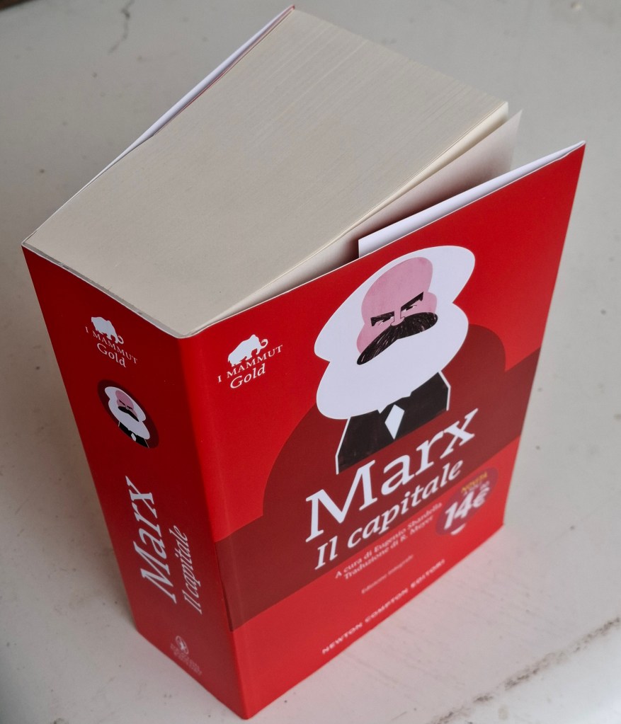 Di che parla e quanto costa? Doppia sorpresa, si tratta di una riedizione del Il Capitale del “vecchio” Karl Marx e di altri suoi scritti complementari. La copertina è frutto di design attuale; vediamo quanto costa. Offerta speciale? Sembrerebbe; No, prezzo stampato anche sul retro, come al solito. circa 1.700 pagine Euro 14,90. Tenendo conto che qualche giorno prima a avevo pagato euro 15,00 per un tascabile di poche pagine, mi sono detto che la carta costa poco, è il contenuto che conta. Come sempre più spesso accade si paga il “brand” e quello del marxismo è ormai obsoleto. Obbedendo ad una delle più classiche reazioni irrazionali, dopo aver verificato velocemente la grafica etc. mi sono detto: è grosso, è pesante ma è un affare. E poi il capitale e gli altri scritti di Marx non li hai mai letti per intero. Lo prendo. Alla cassa ironizzo con la simpatica addetta sul basso prezzo al Kg dell’opera. Viste le dimensioni del volume, lei gentilmente mi chiede “vuole un sacchetto”? Certo, grazie. Pagamento digitale, ovviamente, e alla fine della transazione scopro il prezzo finale che mi è stato addebitato euro 15,20. Ergo, il sacchetto, anch’esso di carta, e con il logo della libreria, costa euro 0,30. L’addetta coglie il mio sguardo sorpreso e accenna una giustificazione “lo so, c’è anche la pubblicità ma …” Arrivato a casa non posso trattenermi dal fare le verifiche del caso, quelle che raccomando sempre agli altri, non certo per i libri. Adotto il primo indicatore che mi viene in mente. Il prezzo al kg appunto. Utilizzando la bilancia della cucina registro: 1370 gr per il volume e 30 gr per il sacchetto! Fatti i conti, verificate se avete qualche dubbio, ho pagato lo stesso prezzo al grammo per il volume di Marx e per il sacchetto. 0,01 euro al grammo, cioè 10 euro al Kg. Povero Capitale … (continua)