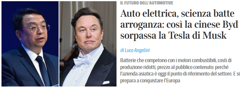 Auto elettrica, scienza batte arroganza: così la cinese Byd ha sorpassato la Tesla di Musk | Corriere.it